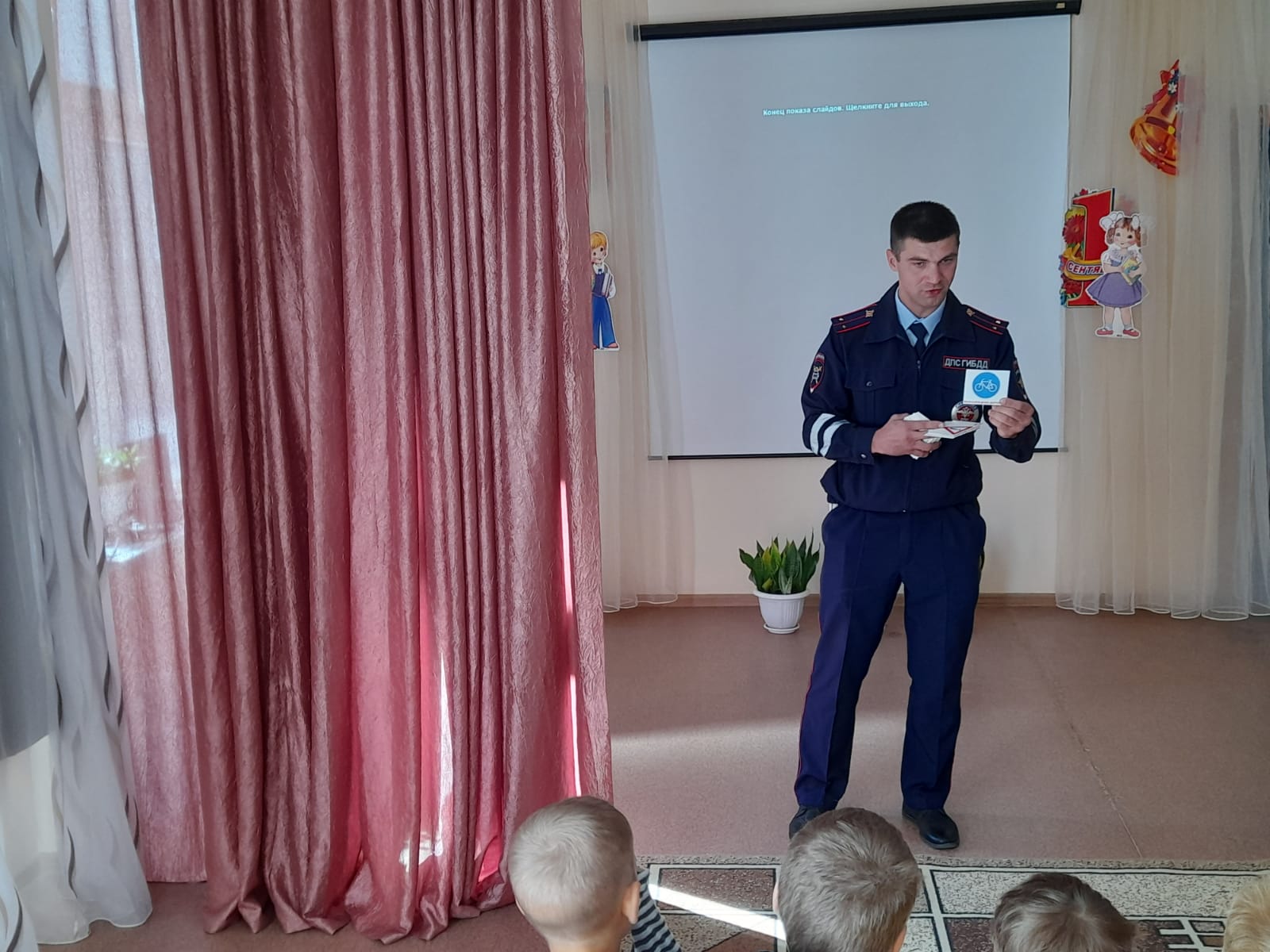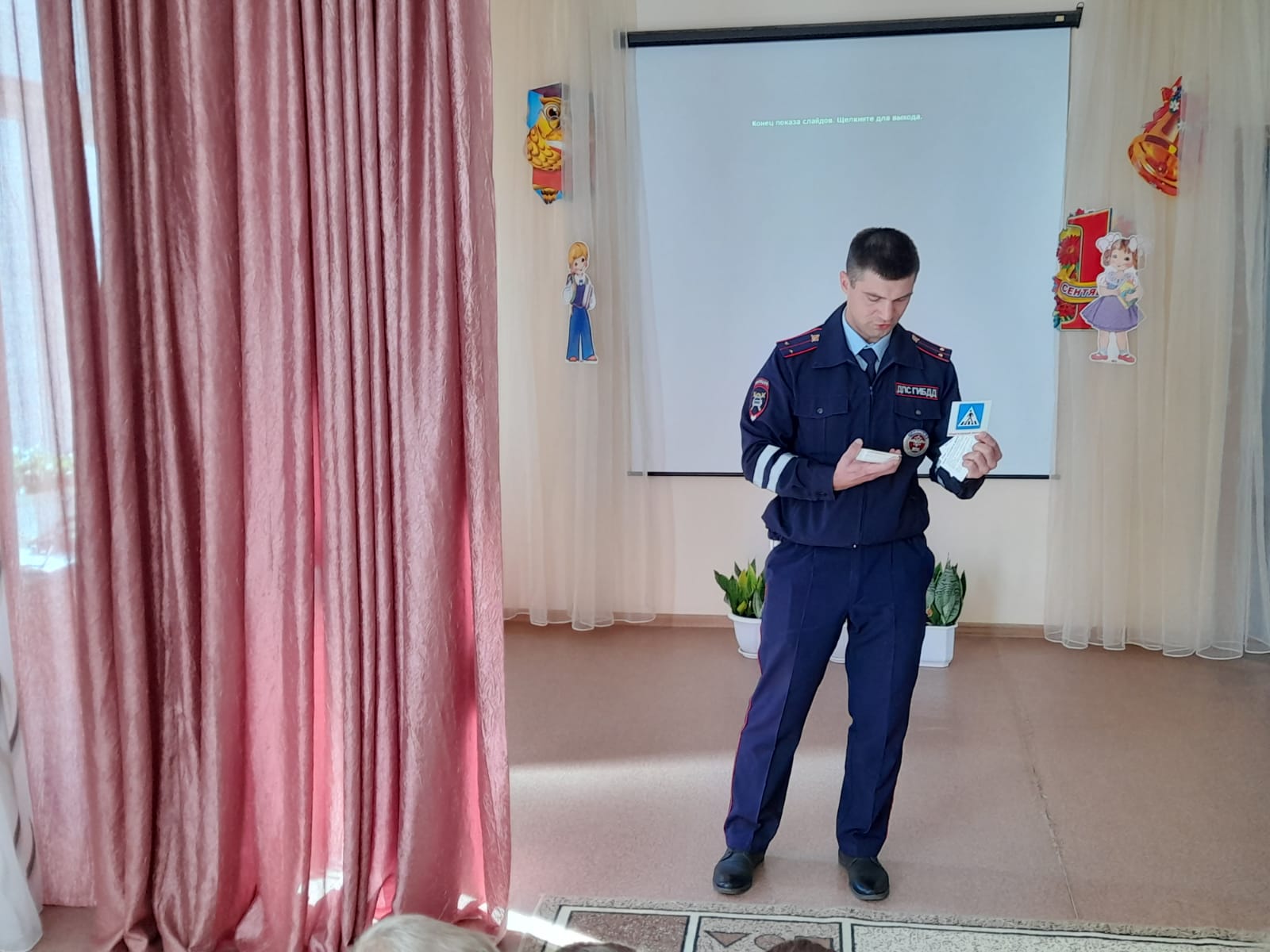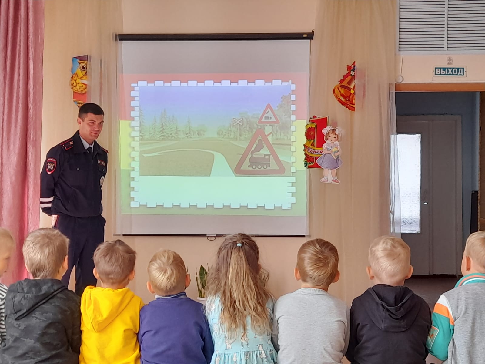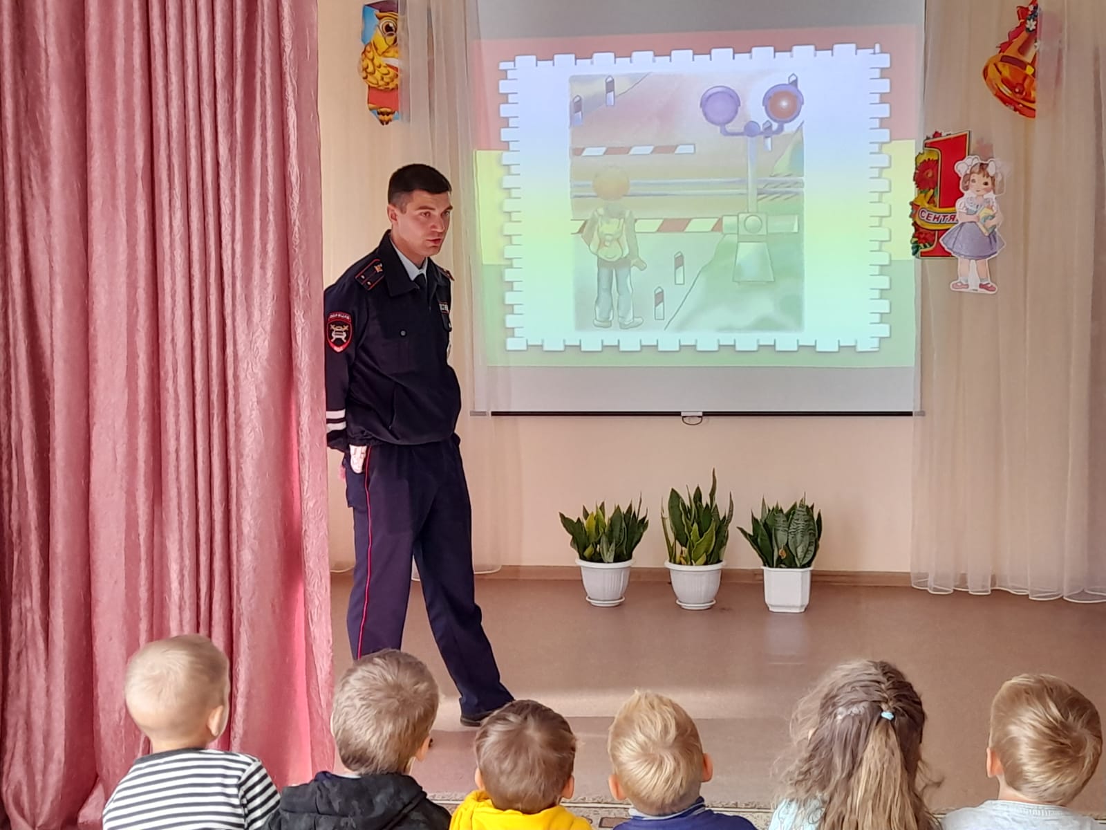Профилактика детского дорожно-транспортного травматизма – проблема всего общества, одна из приоритетных задач образовательных учреждений. Решить ее можно только общими усилиями. Поэтому встречи с инспекторами ГИБДД всегда актуальны и важны.Сегодня у нас в гостях побывал сотрудник Отделения ДПС ГИБДД Тимофеев Александр Владимирович. Он провел для детей профилактическую беседу на тему : "Правила поведения на железной дороге".Рассказал о правильном и безопасном поведении около железной дороги.Вместе с полицейским дети вспомнили основные правила пешеходов и поиграли в игру «О чем говорит знак».На протяжении всей встречи дети с большим вниманием слушали инспектора ГИБДД и задавали интересующие их вопросы. А в конце встречи сотрудник Отделения ДПС ГИБДД Тимофеев Александр Владимирович подарил детям две настольных игры по правилам дорожного движения.