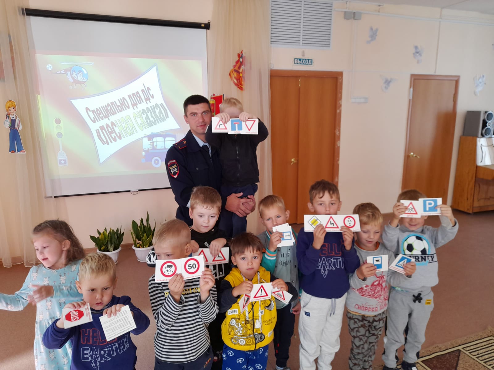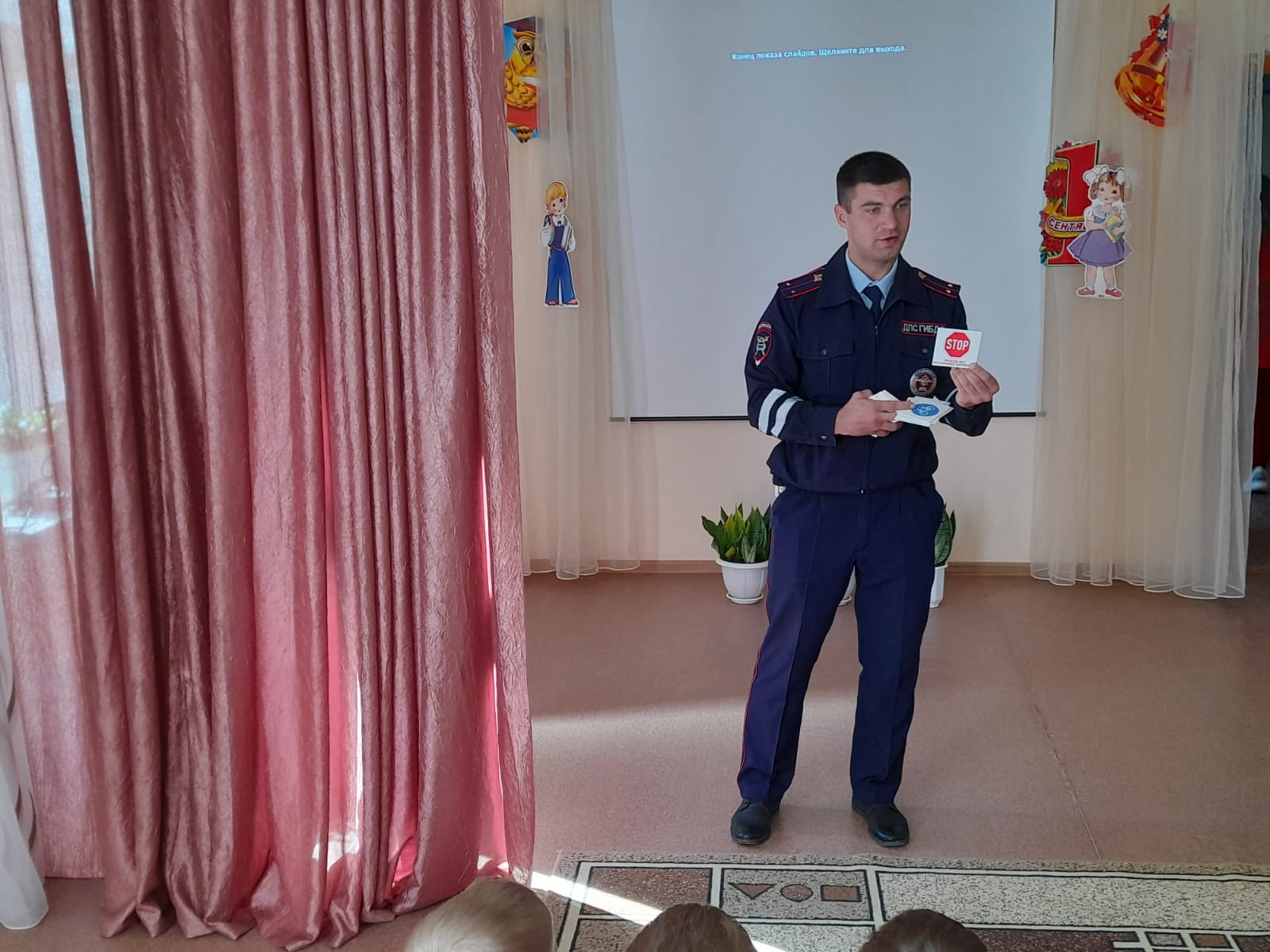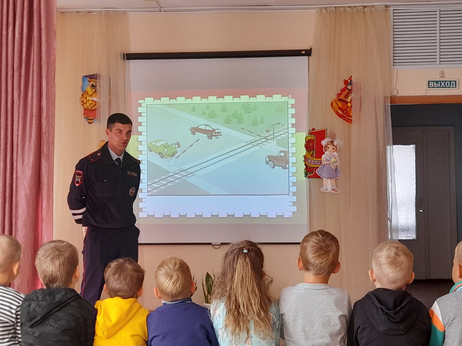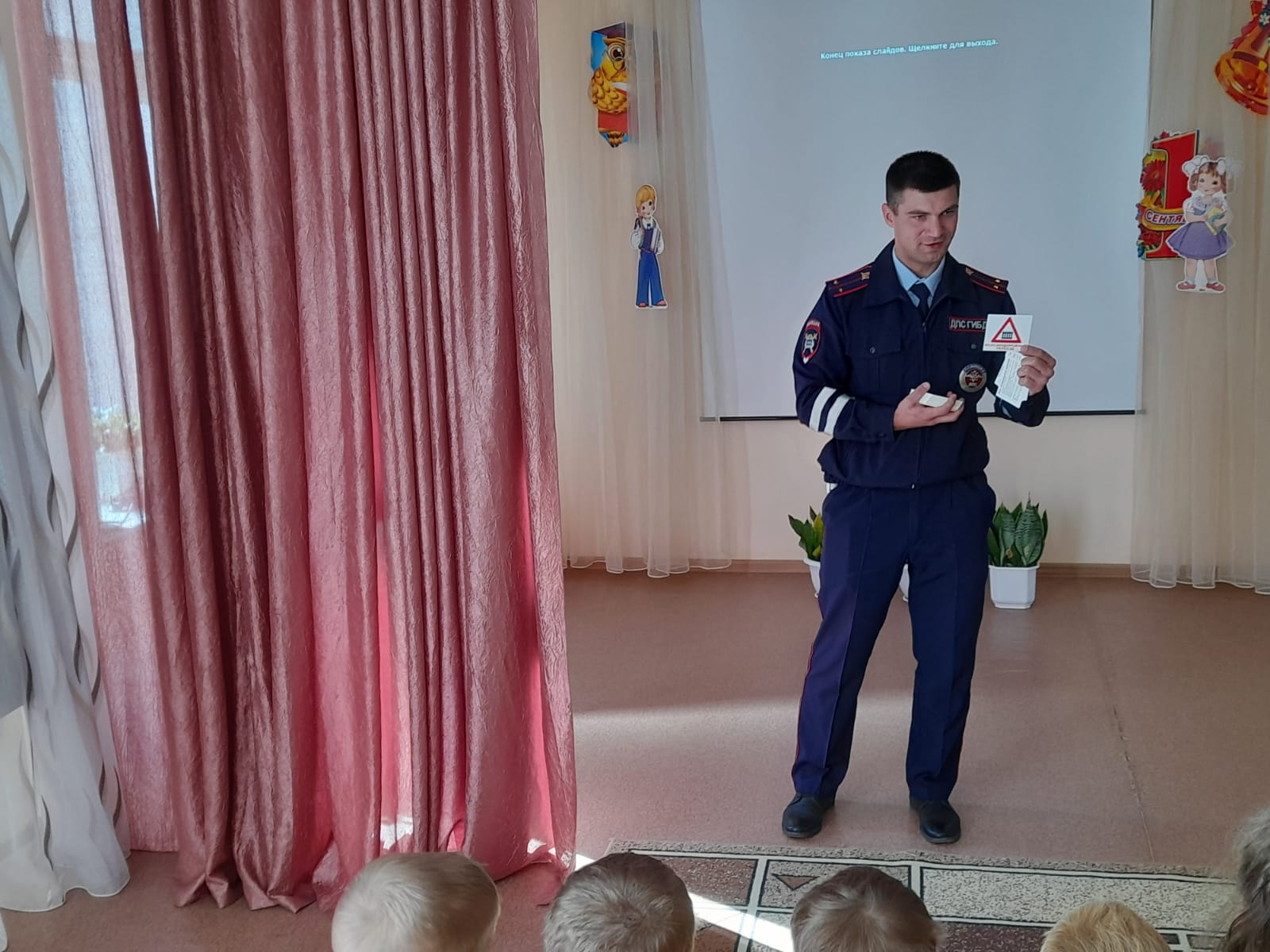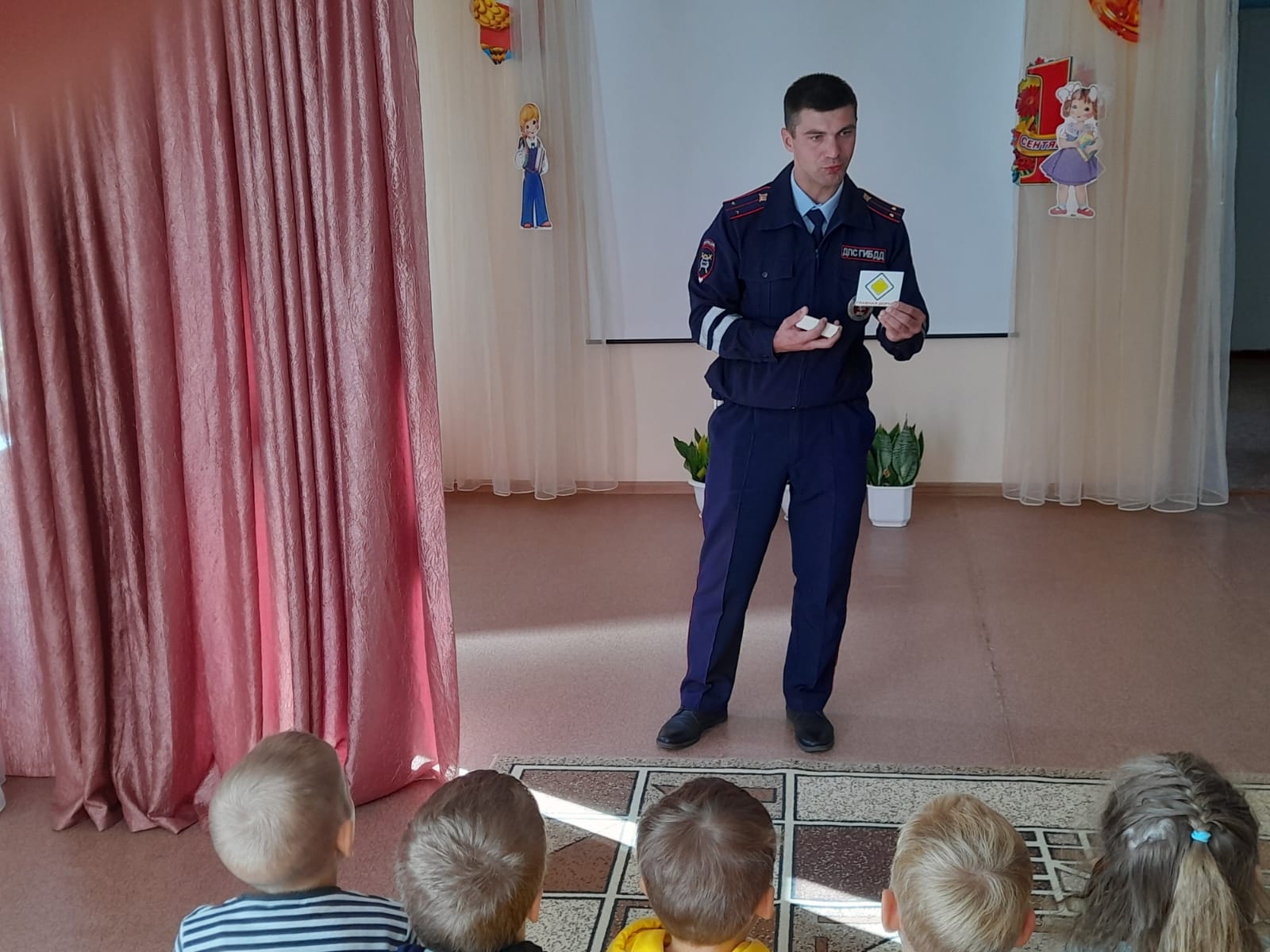 Профилактика детского дорожно-транспортного травматизма – проблема всего общества, одна из приоритетных задач образовательных учреждений. Решить ее можно только общими усилиями. Поэтому встречи с инспекторами ГИБДД всегда актуальны и важны.Сегодня у нас в гостях побывал сотрудник Отделения ДПС ГИБДД Тимофеев Александр Владимирович. Он провел для детей профилактическую беседу на тему : "Правила поведения на железной дороге".Рассказал о правильном и безопасном поведении около железной дороги.Вместе с полицейским дети вспомнили основные правила пешеходов и поиграли в игру «О чем говорит знак».На протяжении всей встречи дети с большим вниманием слушали инспектора ГИБДД и задавали интересующие их вопросы. А в конце встречи сотрудник Отделения ДПС ГИБДД Тимофеев Александр Владимирович подарил детям две настольных игры по правилам дорожного движения.