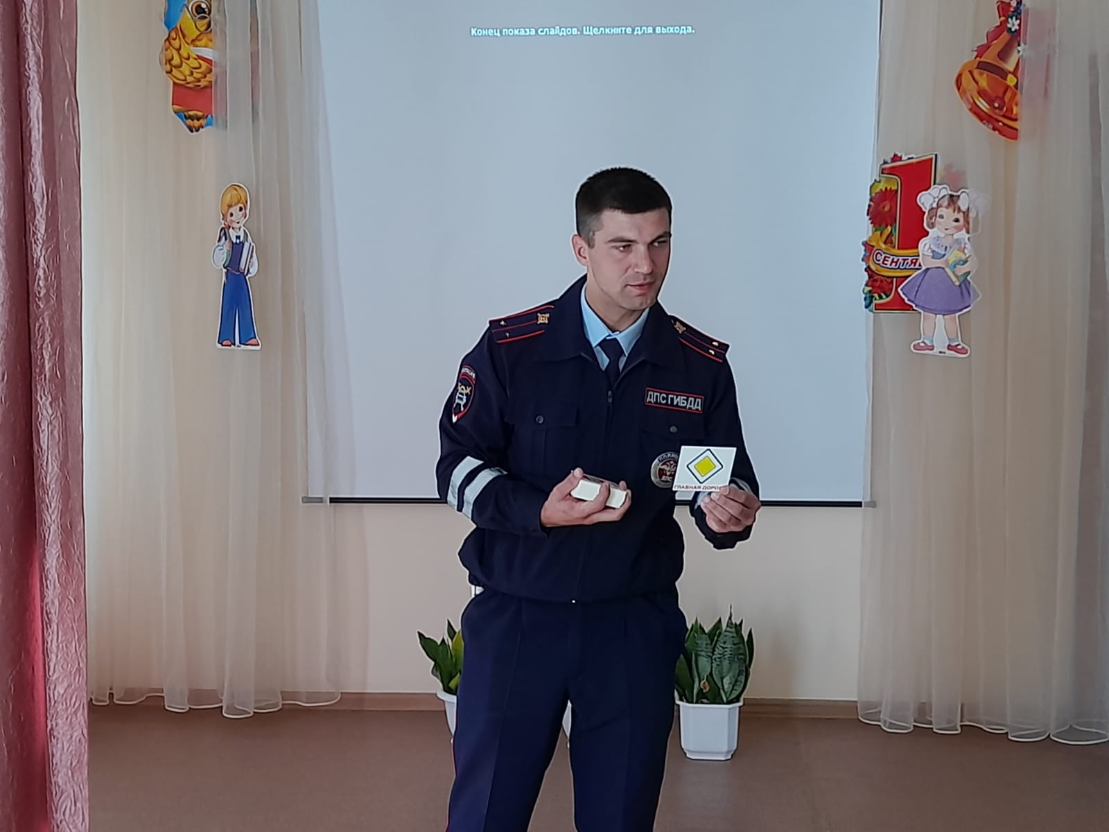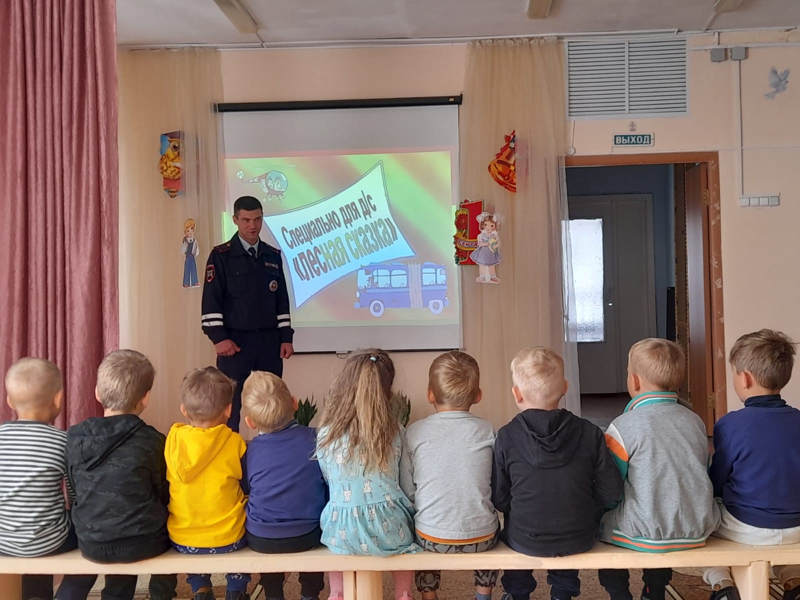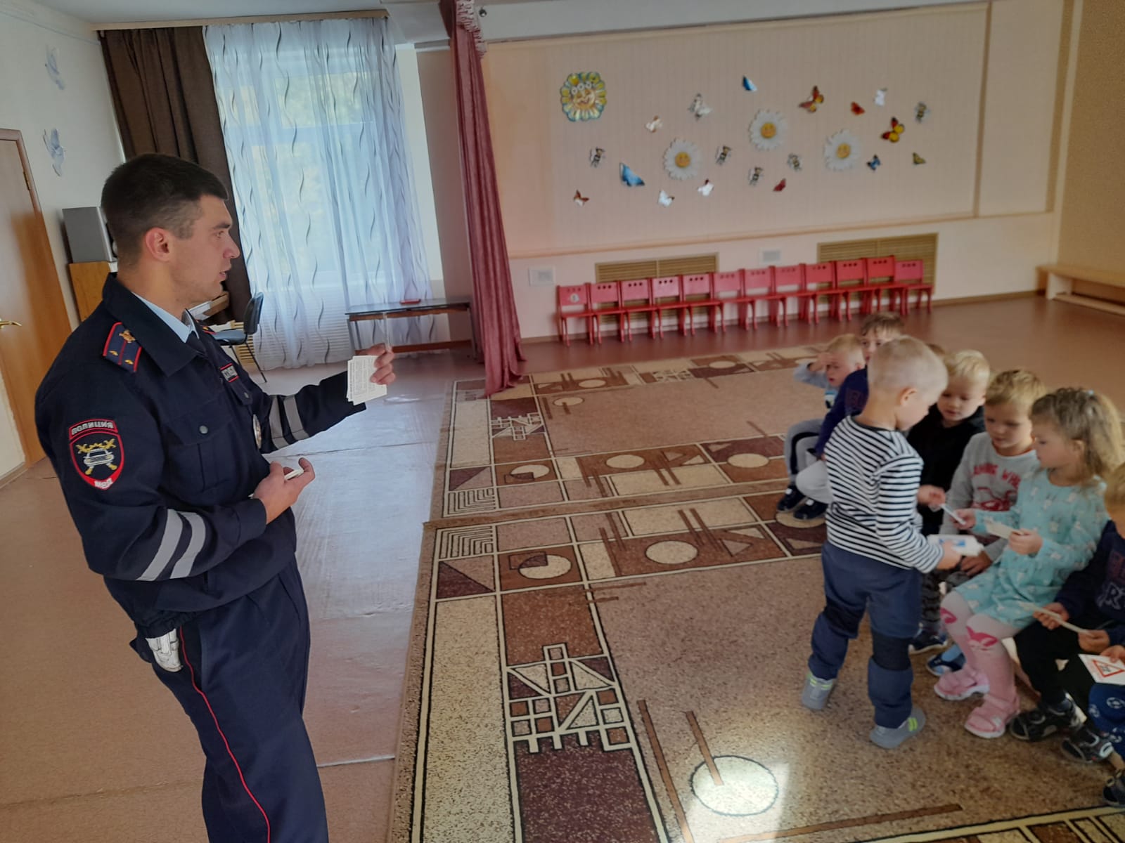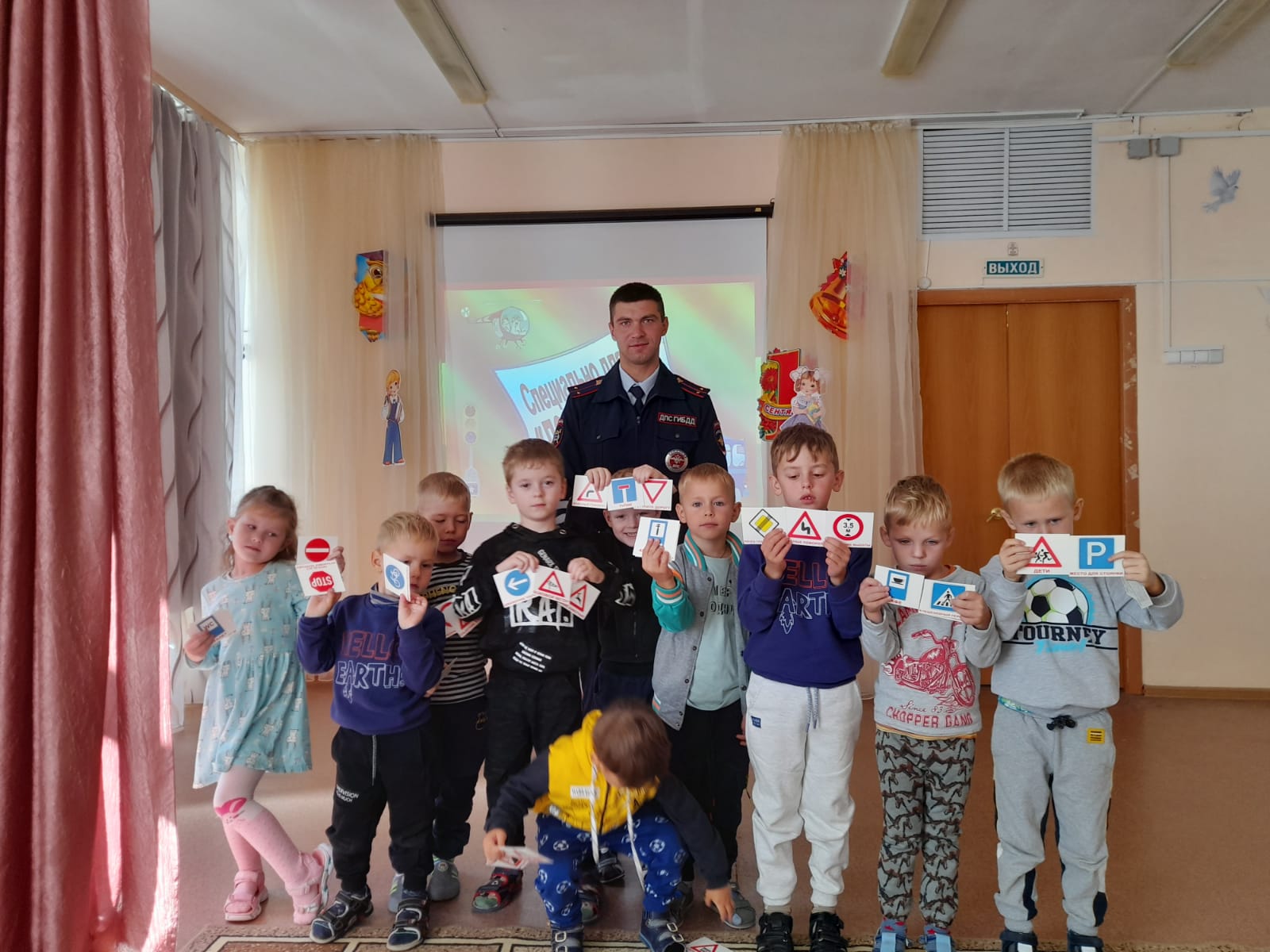 Профилактика детского дорожно-транспортного травматизма – проблема всего общества, одна из приоритетных задач образовательных учреждений. Решить ее можно только общими усилиями. Поэтому встречи с инспекторами ГИБДД всегда актуальны и важны.Сегодня у нас в гостях побывал сотрудник Отделения ДПС ГИБДД Тимофеев Александр Владимирович. Он провел для детей профилактическую беседу на тему : "Правила поведения на железной дороге".Рассказал о правильном и безопасном поведении около железной дороги.Вместе с полицейским дети вспомнили основные правила пешеходов и поиграли в игру «О чем говорит знак».На протяжении всей встречи дети с большим вниманием слушали инспектора ГИБДД и задавали интересующие их вопросы. А в конце встречи сотрудник Отделения ДПС ГИБДД Тимофеев Александр Владимирович подарил детям две настольных игры по правилам дорожного движения.