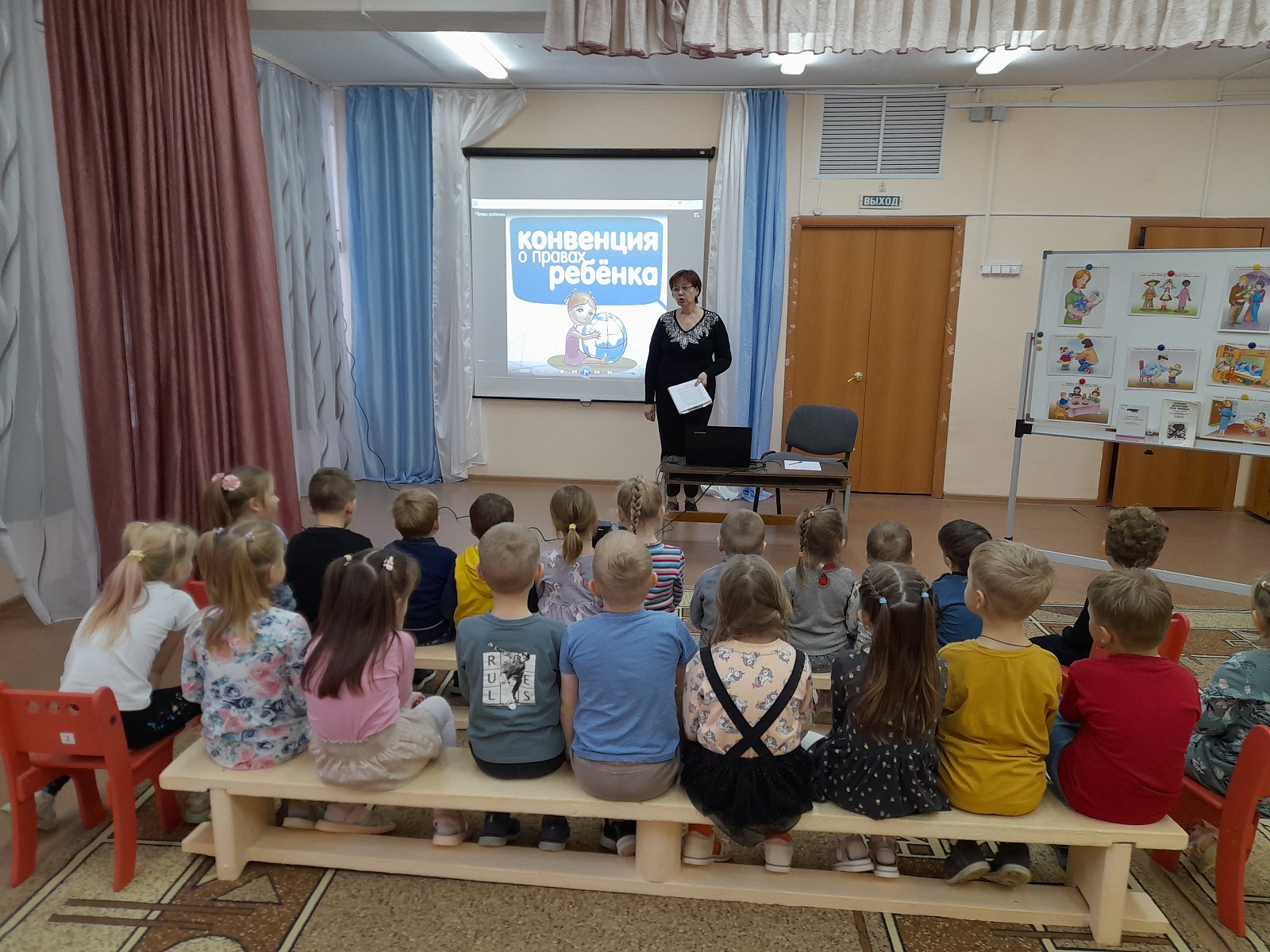 В разновозрастной группе «Теремок» прошло мероприятие, посвященное правам ребенка. Дети с интересом участвовали в беседе, в ходе которой они познакомились с основными правами – правом на жизнь и имя, образование и отдых, медицинскую помощь и правильное питание, на любовь и заботу со стороны взрослых. А также, вместе с детьми вспомнили, что кроме прав, есть еще и обязанности - помогать родителям, хорошо учиться, соблюдать правила безопасного поведения.