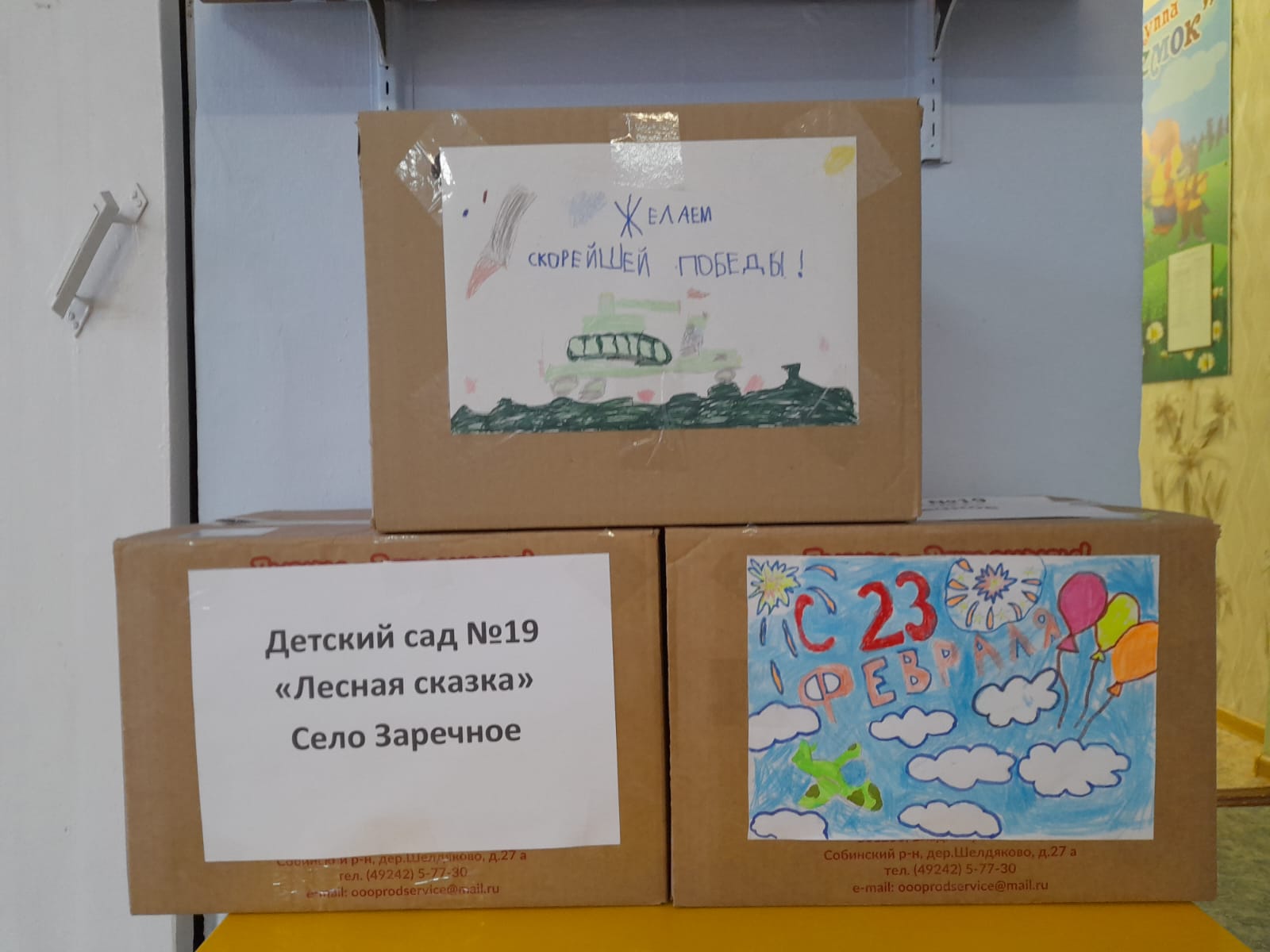В преддверии 23 февраля прошла акция «Спасибо, что защищаете нашу Родину и нас» по сбору гуманитарной помощи участникам СВО. Работниками и родителями воспитанников МБДОУ детского сада № 19 «Лесная сказка» был организован сбор подарков участникам СВО. Основная цель акции — выразить поддержку российским военным, участвующим в спецоперации на Украине, и показать единство граждан. Ребята из группы «Теремок» своими руками сделали открытки с праздником 23 февраля, наполненные благодарностью и с пожеланием вернуться к своим семьям живыми, здоровыми и обязательно с победой! На призыв принять участие в акции откликнулись сотрудники и родители. В посылки были переданы: тушенка, конфеты, варенье, печенье, чай, кофе, влажные салфетки. Посылки в зону СВО были отправлены с помощью волонтеров. Огромнейшая благодарность всем, кто принял участие в этих сборах. Спасибо за не равнодушие, отзывчиво активную жизненную позицию, за сотрудничество!