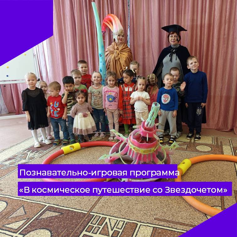 11 апреля, в преддверии Дня космонавтики, для наших детишек прошла познавательно-игровая программа «В космическое путешествие со Звездочётом».