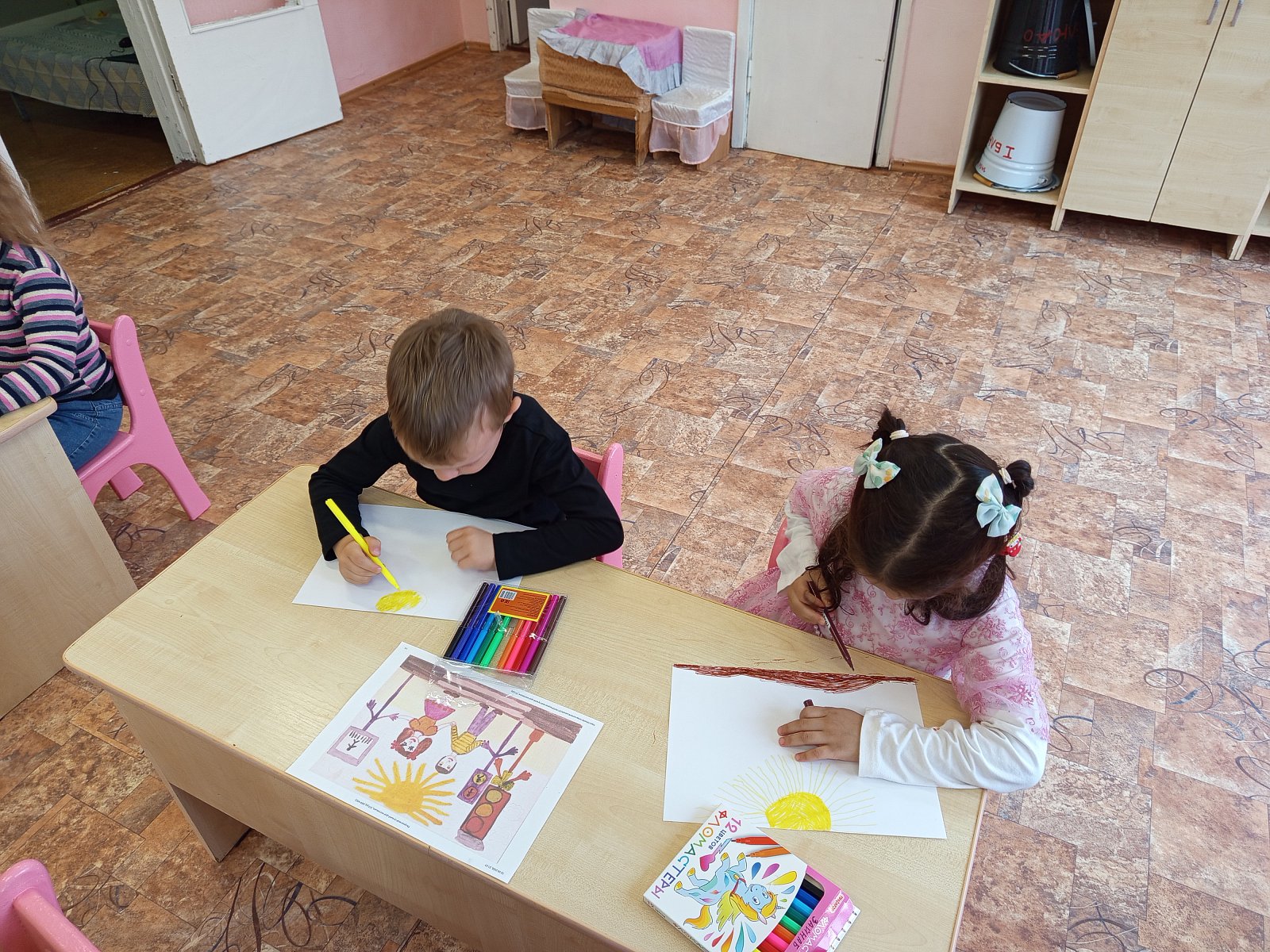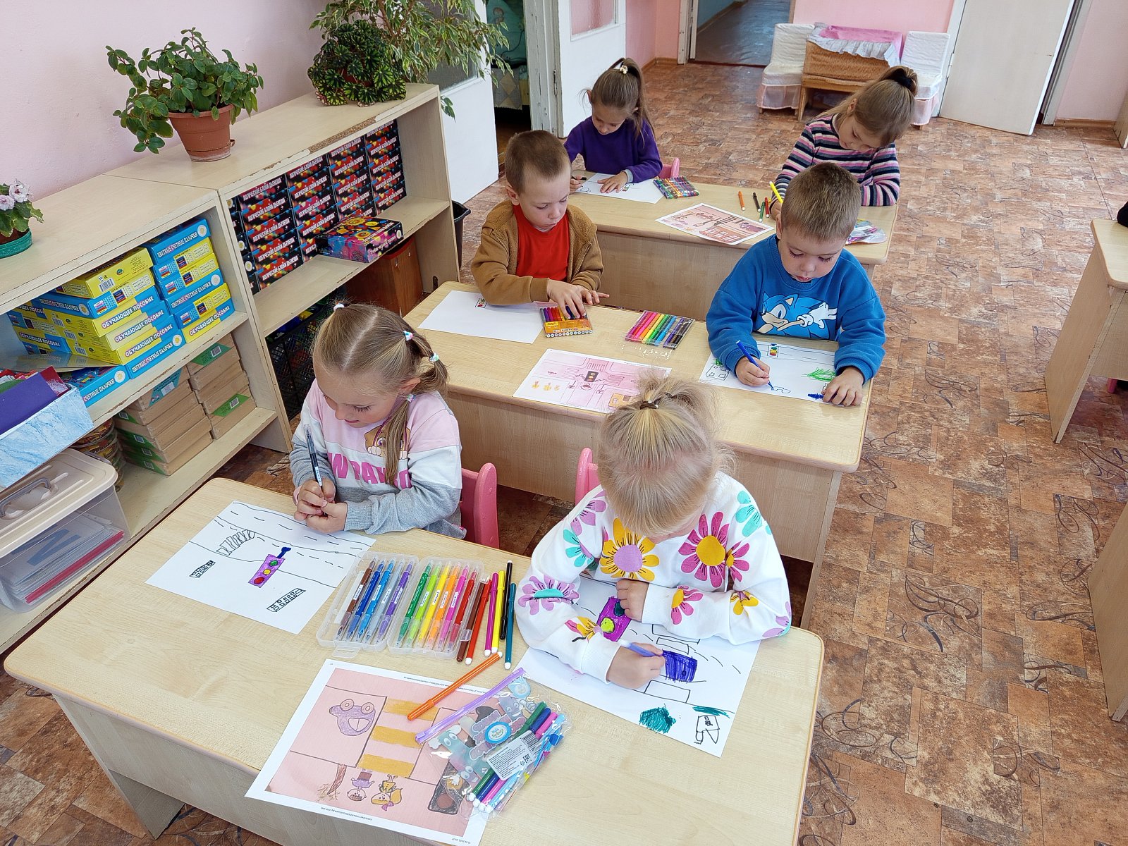 В старшей-подготовительной группе "Теремок" прошла неделя безопасности дорожного движения. Была проведена тематическая беседа о правилах дорожного движения «Правила поведения на дороге, в транспорте, на улице». После этого ребята нарисовали рисунки на тему «Главный помощник на дороге»