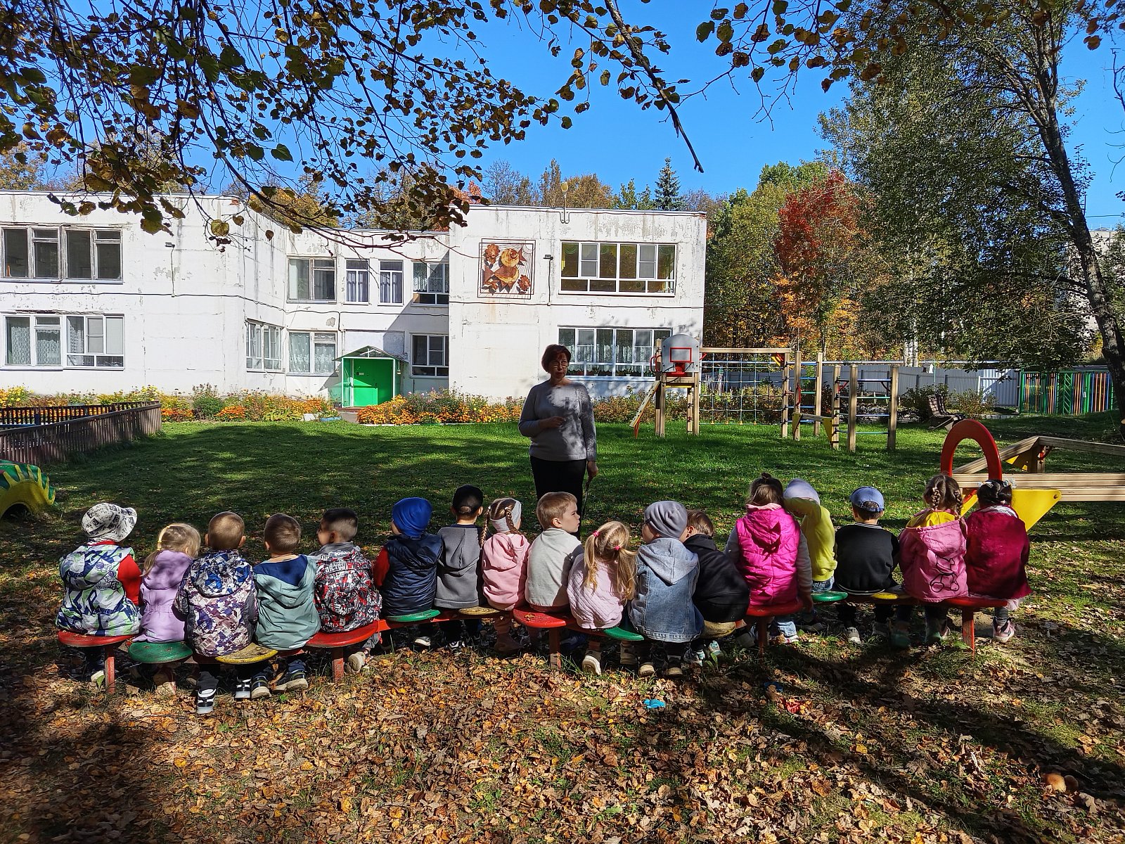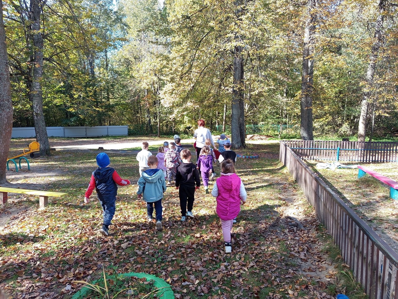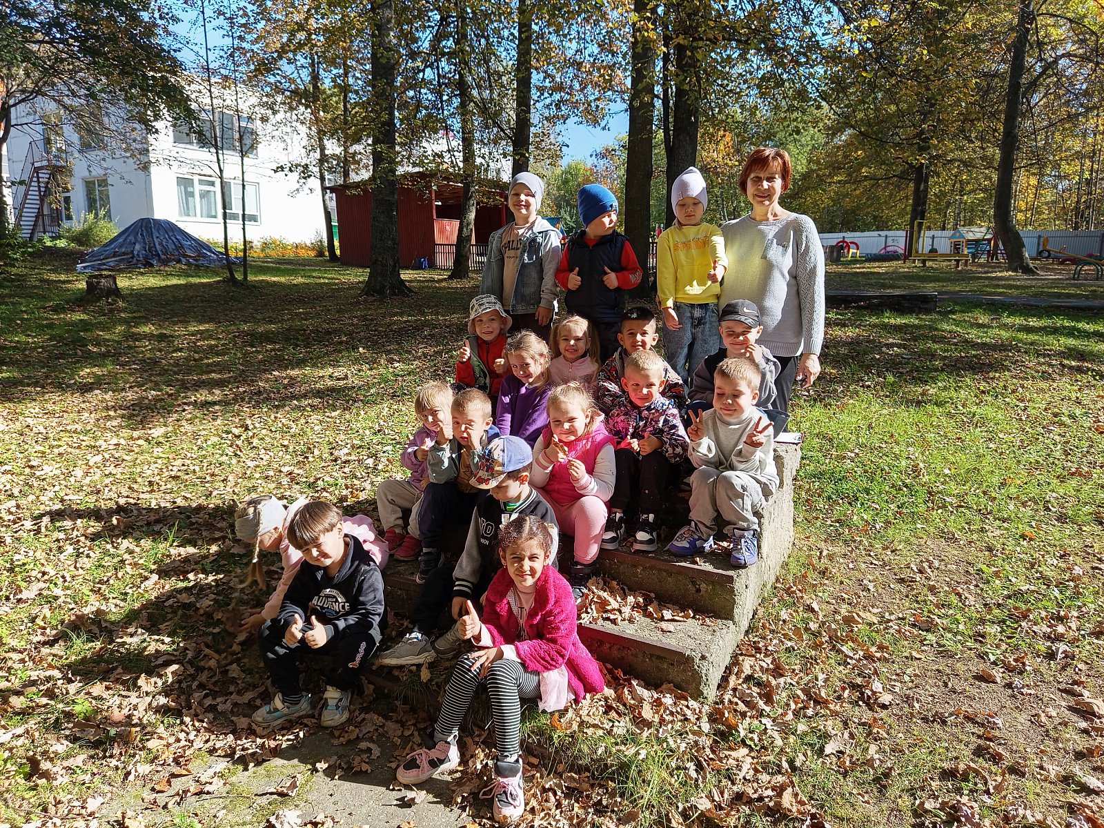Дети с удовольствием послушали осенние стихи, пошуршали осенним ковром под ногами, прислушались к шёпоту листопада. Конечно, невозможно было удержаться ребятам и не поиграть с облетевшей листвой. Дети очень любят это время года! Нам хочется, чтобы золотая осень не заканчивалась.