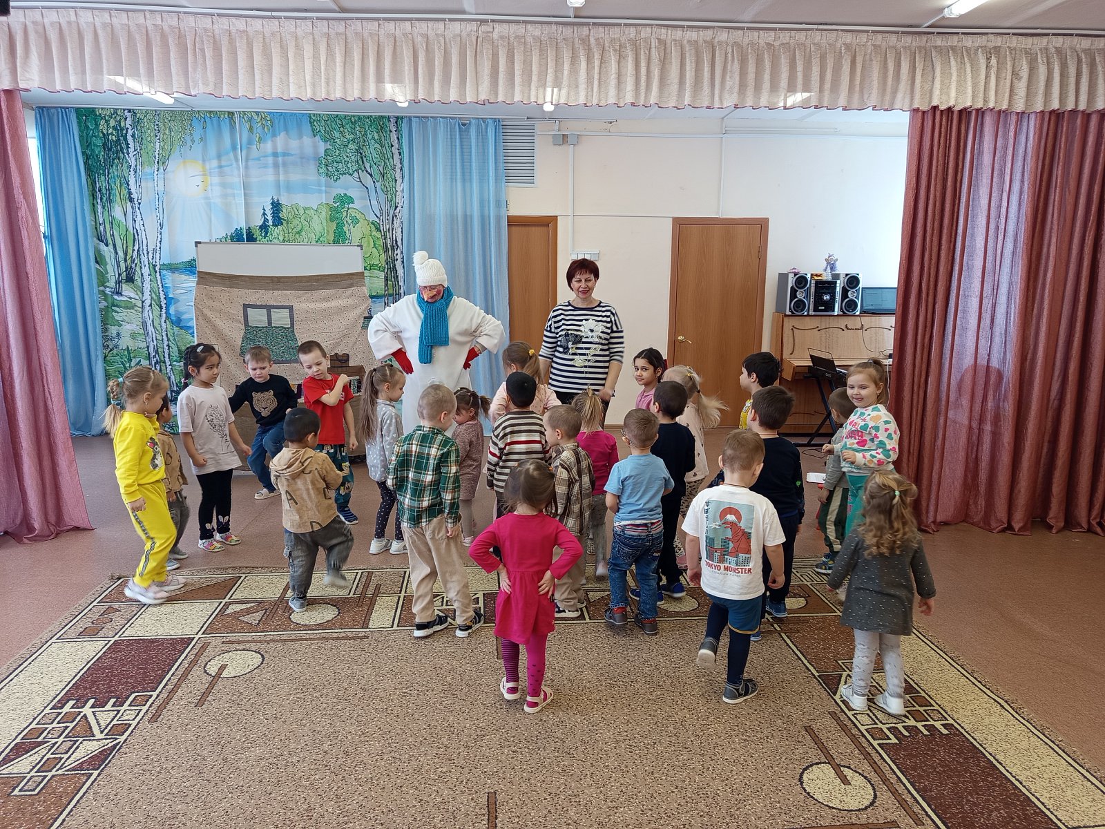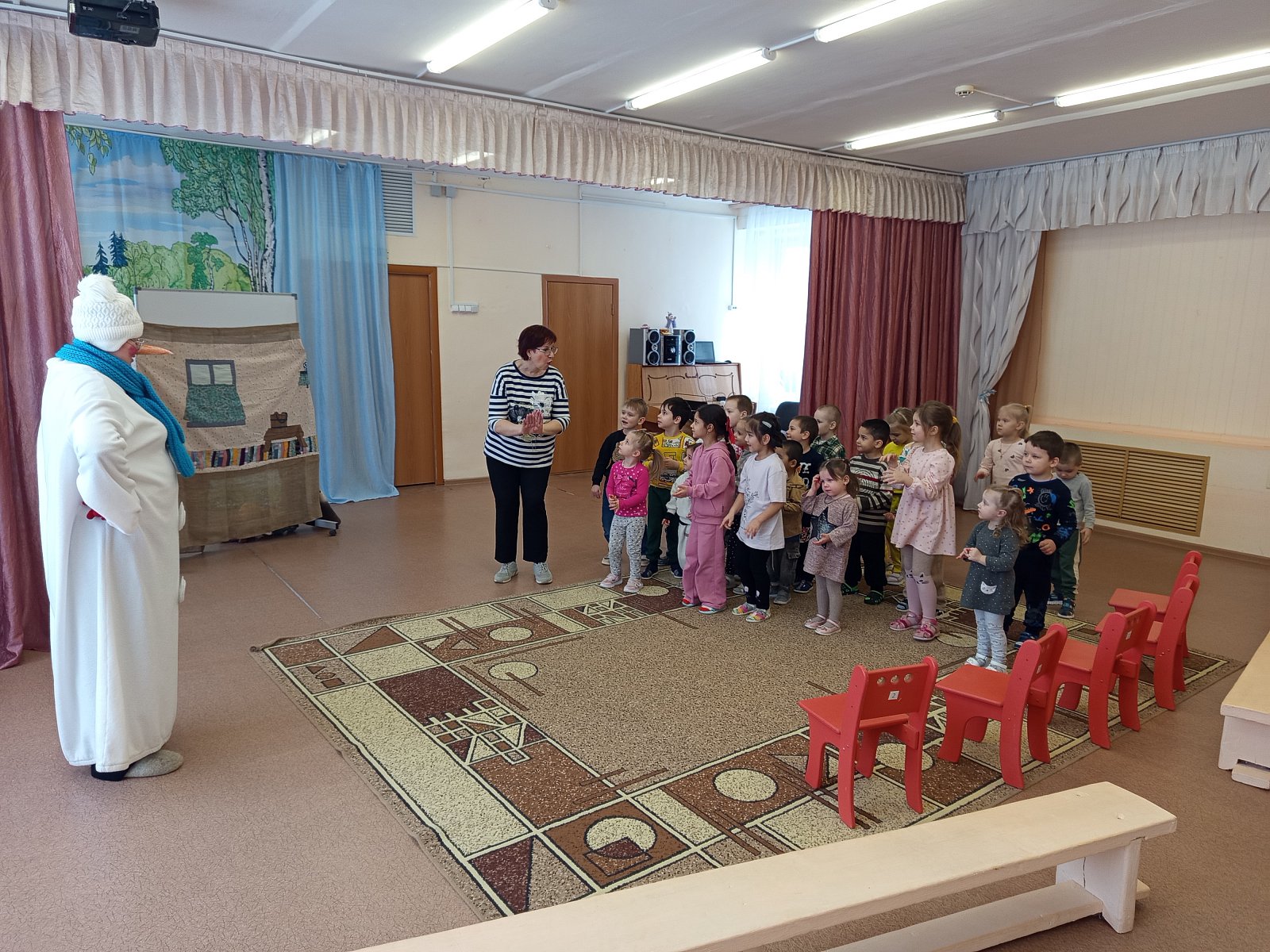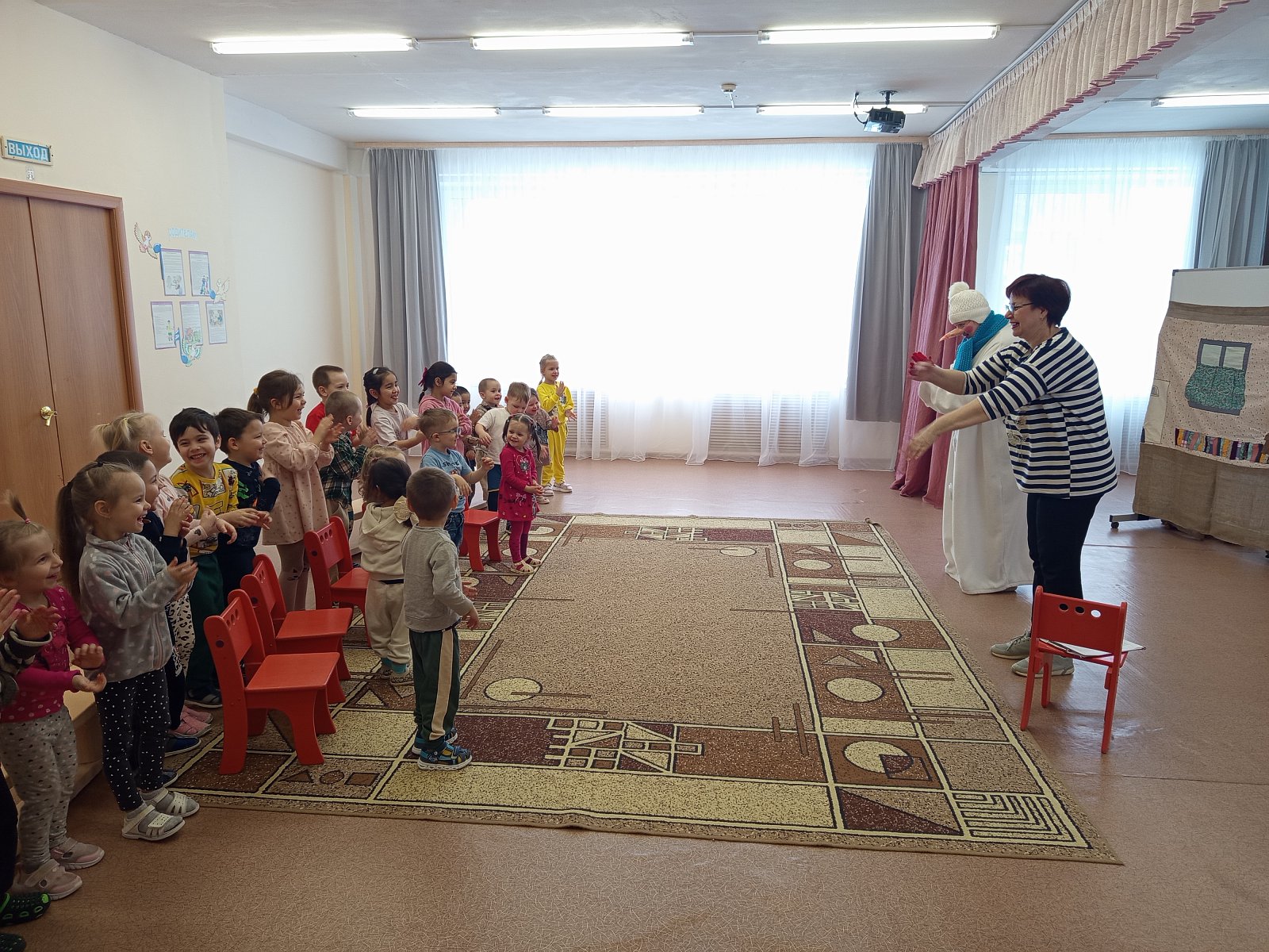 Дети поиграли в игру "Вредное-полезное", отгадывали загадки про вита-мины и предметы гигиены, сделали музыкальную зарядку, посмотрели ку-кольный театр.