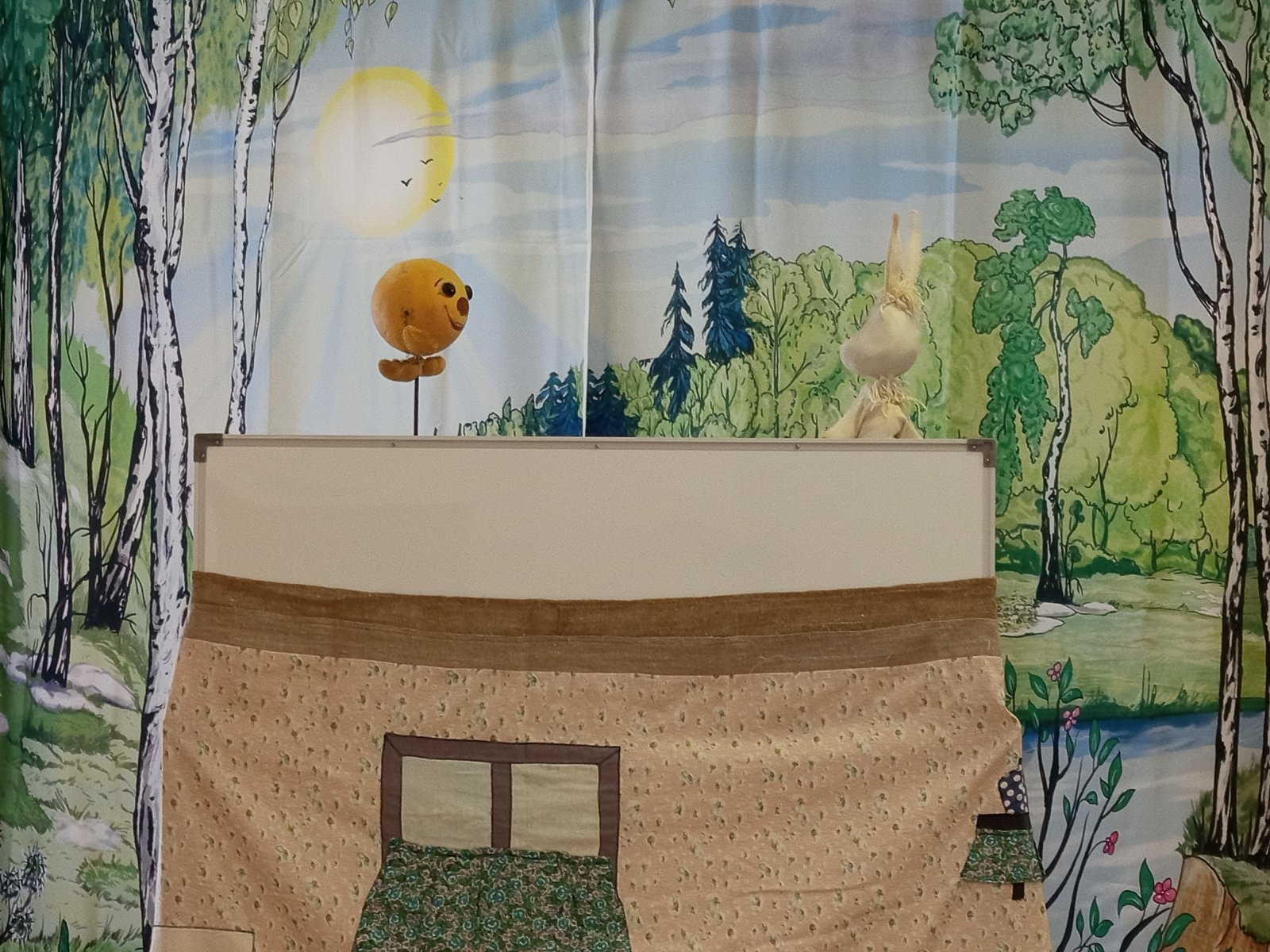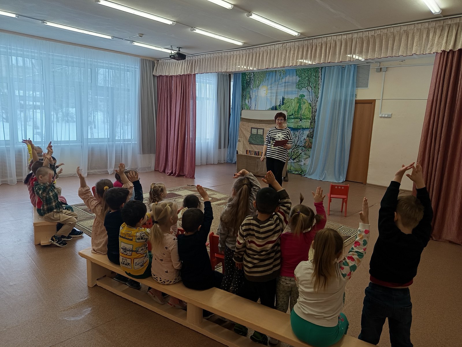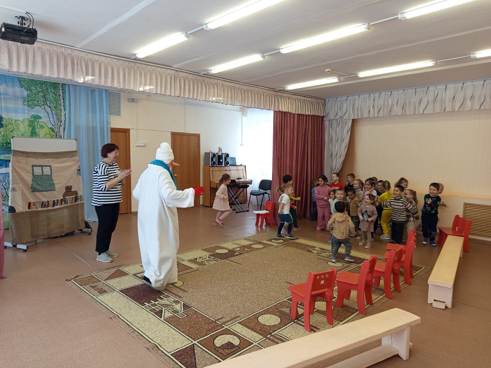 Дети поиграли в игру "Вредное-полезное", отгадывали загадки про вита-мины и предметы гигиены, сделали музыкальную зарядку, посмотрели ку-кольный театр.