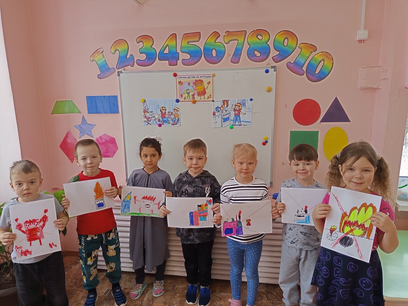 Сегодня с детьми нашего детского сада были проведены беседы по пожарной безопасности, познакомили с профессией – пожарный, разъясняя поступки, действия людей, которые могут привести к случайным возгораниям, их опасности для здоровья; о том, как нужно себя вести в таких ситуациях, чтобы не пострадать от огня, дыма. Затем, дети группы «Теремок» нарисовали рисунки на тему «Спички детям не игрушка!»