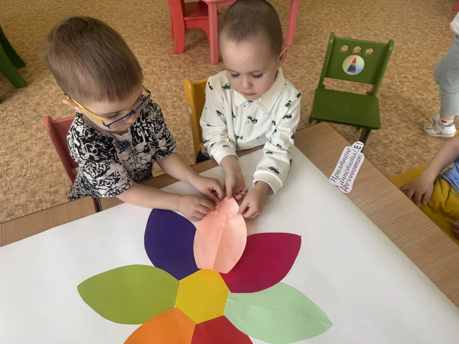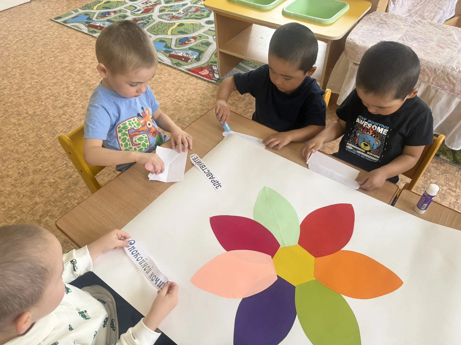 В рамках «Дня доброты» была проведена беседа о добре и дружбе, организованы игры «Доскажи словечко», «Хорошо-плохо»; читали стихи о доброте, заботе, дружбе; узнали добрых героев , которые совершали добрые поступки . Затем своими руками сделали коллективную поделку «Цветок добра».