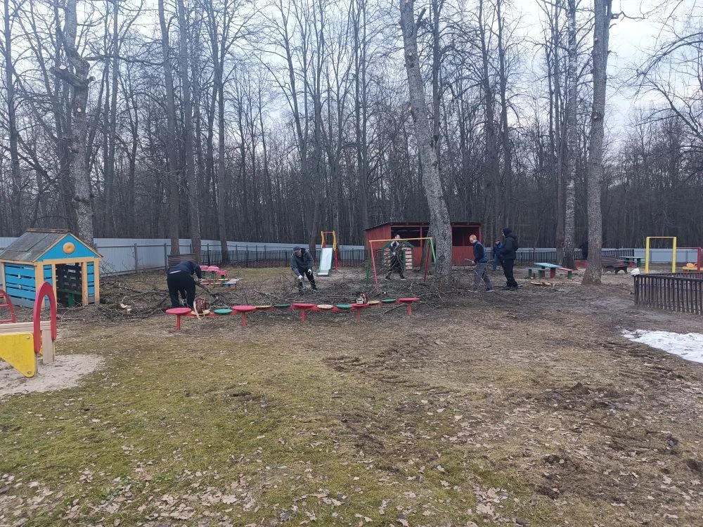 Прихватив необходимый инвентарь, мы дружно очистили прогулочные площадки от прошлогодней листвы и привели в порядок прилегающую территорию. Теперь все участки сада преобразилась, наполнившись свежестью и заботой человеческих рук.